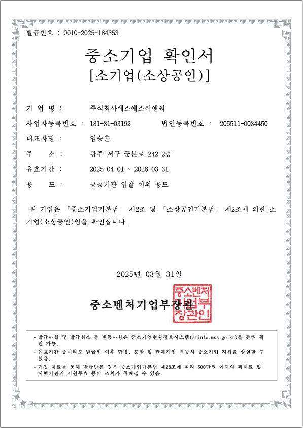 중소기업 확인증 페이지 정보 작성자 최고관리자 댓글 댓글 0건 조회Hit 107회 작성일Date 25-03-29 11:34 본문 중소기업 확인증 목록 이전글사업자등록증 25.03.31 다음글전기공사업 25.03.29 댓글 0 댓글목록 등록된 댓글이 없습니다.
